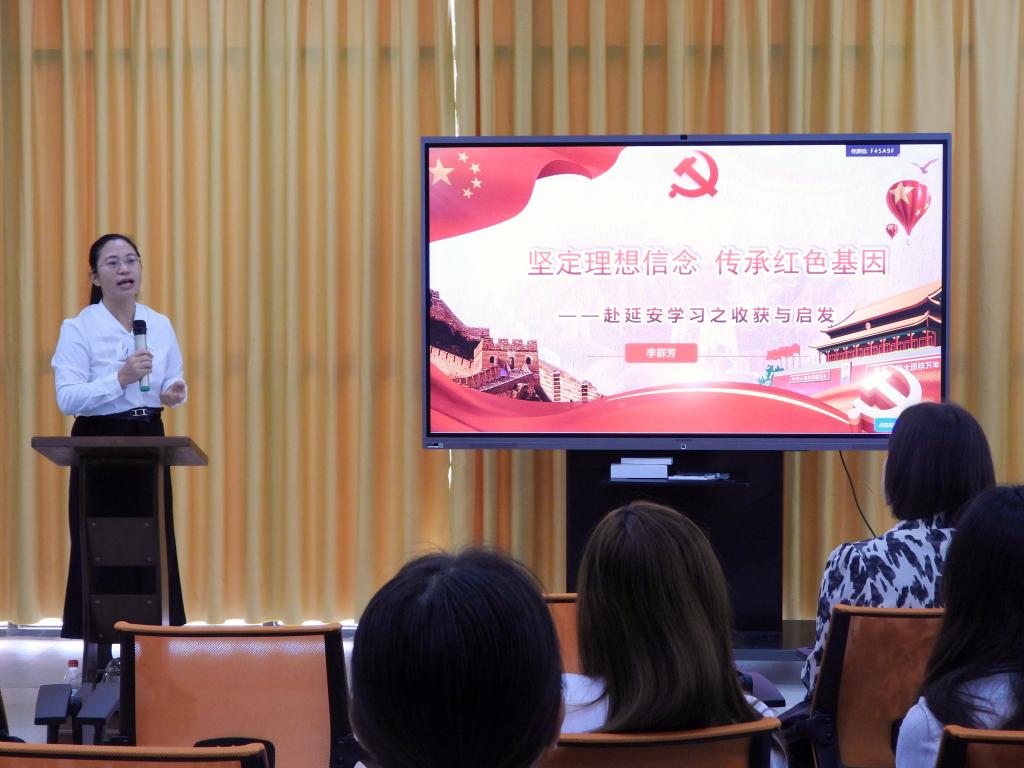 李群芳老师以“坚定理想信念,传承红色基因”为题,带领同学们领悟延安精神形成的过程与精神内涵,通过分享自身赴延安学习的所见所闻和所思所想,让同学们身临其境,体会革命老区的红色文化,真真切切地感受到延安精神的不朽魅力,对革命先烈敬意油然而生。