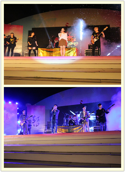 伴着绚丽的灯光与两首开场曲,皇朝乐队与梦乐团用他们青春洋溢的歌声开启了这场不一样的文艺盛宴,现场的气氛伴随着高昂而富有动感的音乐瞬间达到了高潮。