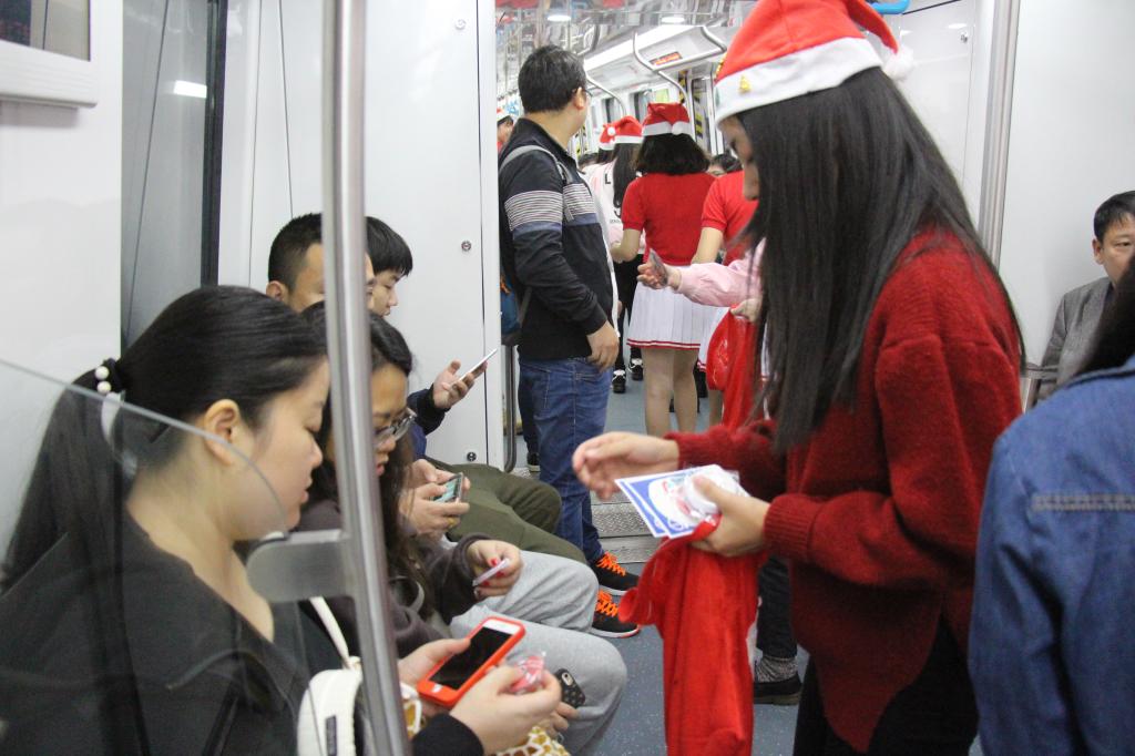 圣诞是欧美国家最重要的节日,也是欧美最流行的节日文化。近年来随着圣诞在我国流行度的逐年递增,越来越多的人们已经将其视为了解西方文化、与亲朋好友欢聚新年的一种重要方式。作为英语专业学生,熟悉和了解西方文化是每一位学生的必修课。而如何将西方文化与中国文化结合,在实践中提升学生的综合素质是外国语学院多年来践行的人才培养重要的内容。推崇文明是中国文化的重要内容,中国文明的核心内容就是推崇仁义礼智信。外国语学院师生摆脱国内传统的参加圣诞派对,圣诞购物狂欢的庆祝方式,将圣诞文化带入倡导文明的实践活动中,在我校尚属首次,在国内也并不多见。学生在圣诞来临之际走进地铁,向市民派发文明乘车勋章和手册,纠正不文明乘车行为,即获得了体验西方文化的机会,又传播了“礼让他人、关爱他人、帮助他人”的文明行为。