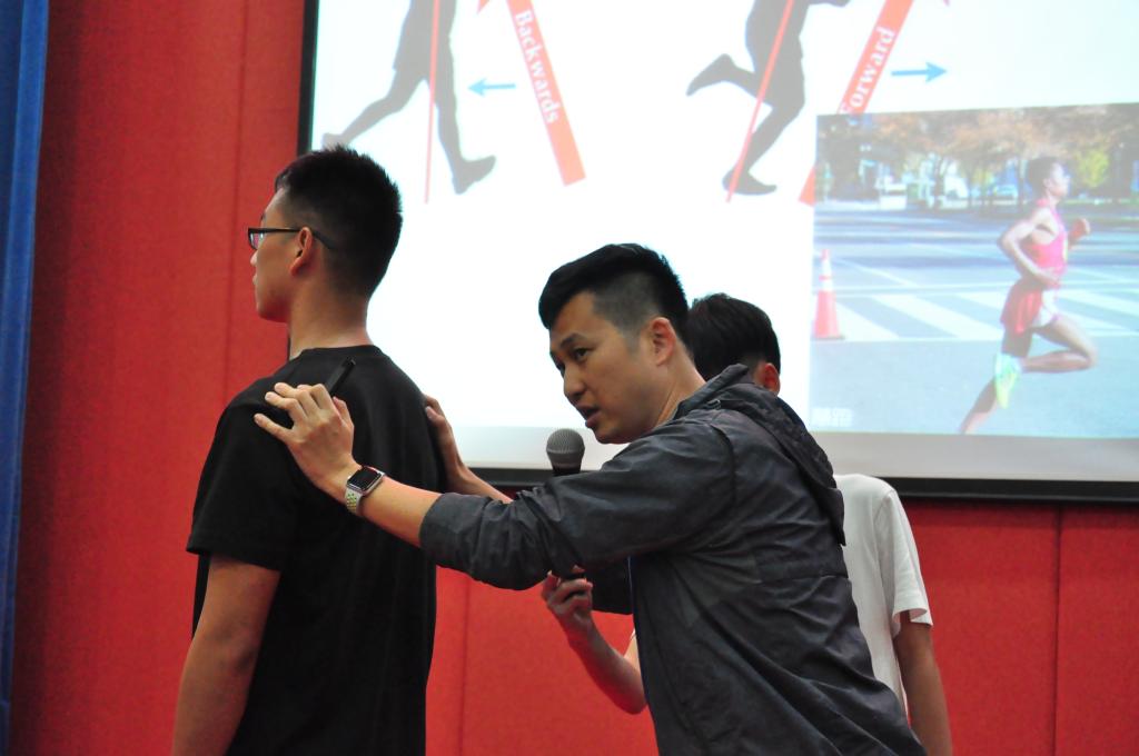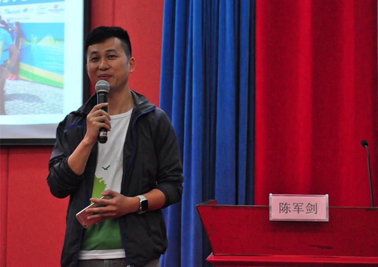 论坛开始,陈军剑老师首先介绍了自己两年半来和跑友们在跑步路上近2500公里的经历。接着,陈老师以身示范了正确的跑步姿势,并强调“每一个人都是天生的跑者,需要正确的方法”,用正确的跑姿、合理的跑速以及恰当的热身方法,才能更好地享受跑步的乐趣。“我们要在跑道上相遇”,陈老师在分享之余不忘号召同学们积极参与跑步锻炼,坦言希望在跑道上和同学们来一场邂逅。
