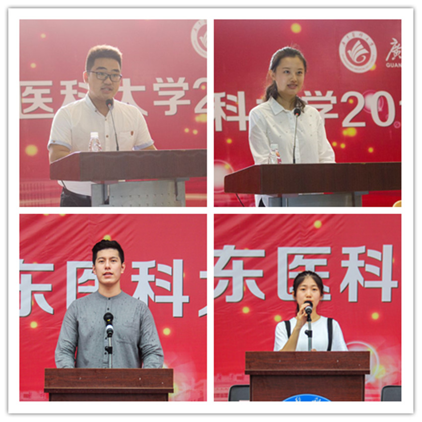 教师代表王芳老师认为,新生们要理解一点,广东医不是人生的终点,它是人生的另一个起点,也是实现梦想的新天地。她还引用神光向达摩求法的故事,告诫新生们需要保持恭敬之心,更需要立勤苦志,才能学好专业知识。教师代表陈日玲老师则对新生们寄予了三个期望,希望他们学好医学理论基础知识、培养善于动手与勤于思考的习惯以及重视医德修养。