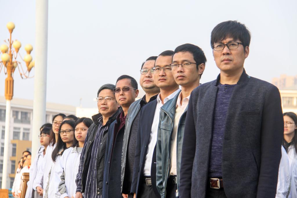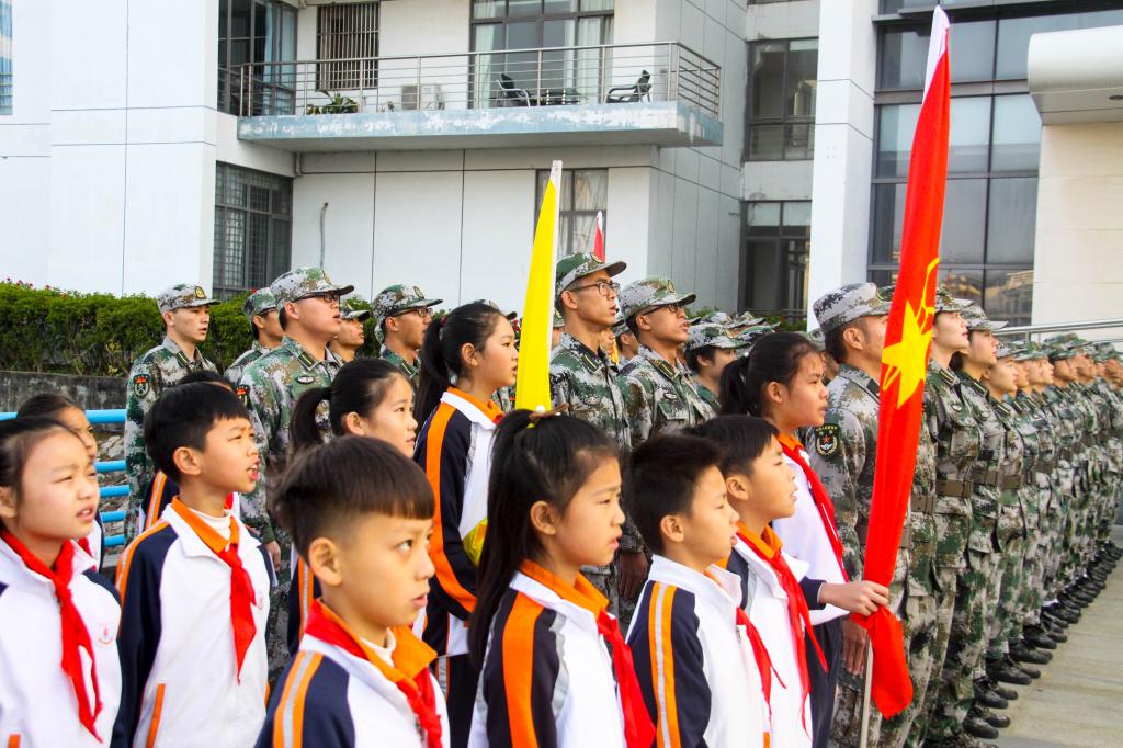我校党委符学三副书记、学工部谭秋浩部长、团委许崇泰副书记,中山大学武装部徐亮副部长,东莞理工学院学工部及武装部卫红权副部长,惠州学院校团委综合科潘勇裕科长,大朗镇实验小学德育处吴常初主任等也参加了升旗仪式。(文/谭小晖 谭艳妍 图/杨家浩 编/周圆 审/蔡定彬)