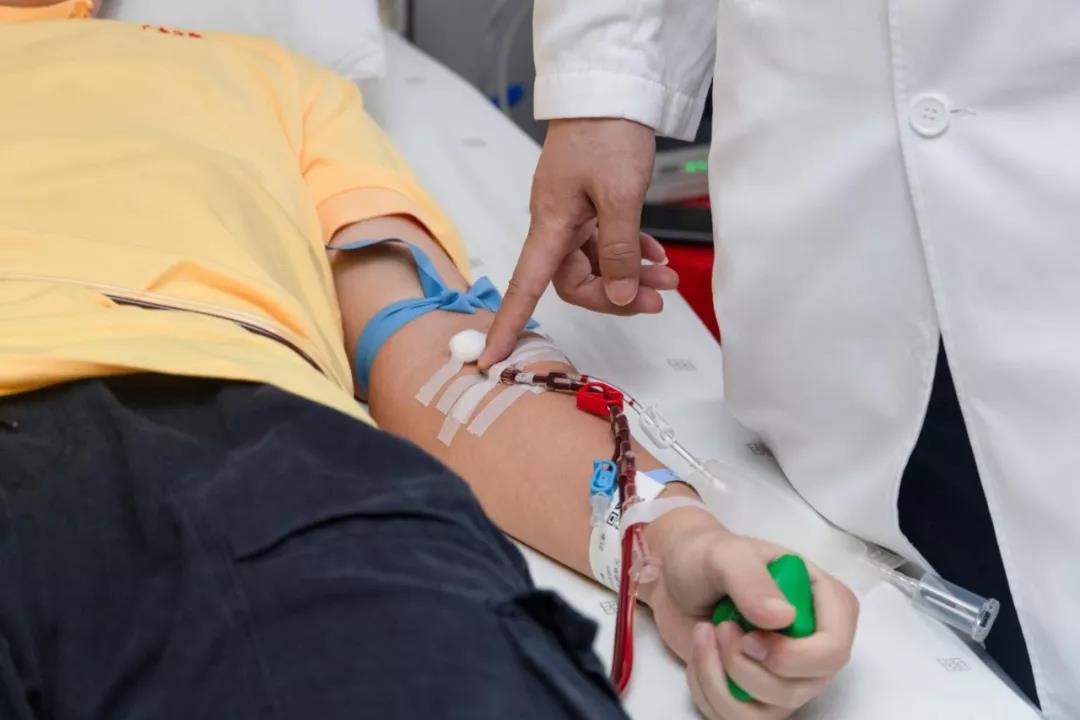造血干细胞的采集工作从8点起持续了4个多小时。王锋左臂内侧插入抽血管,抽取出的血液通过分离机提取出造血干细胞混悬液,剩余血液部分再从右臂内侧实现回输。由于王锋的血管特别细,采集过程并不像预期那样顺利,平躺在床上,双臂伸展,保持同样的姿势不能动。但是整个过程中,笑容始终洋溢在王锋的脸上,向身边的志愿者、老师、同学传递着爱的能量,在场的每一个人都深受感动和震撼。他心理更有一个信念,我没有辜负别人的期望,我的血液将在他的身体流淌,康复后的他会有美好的未来。