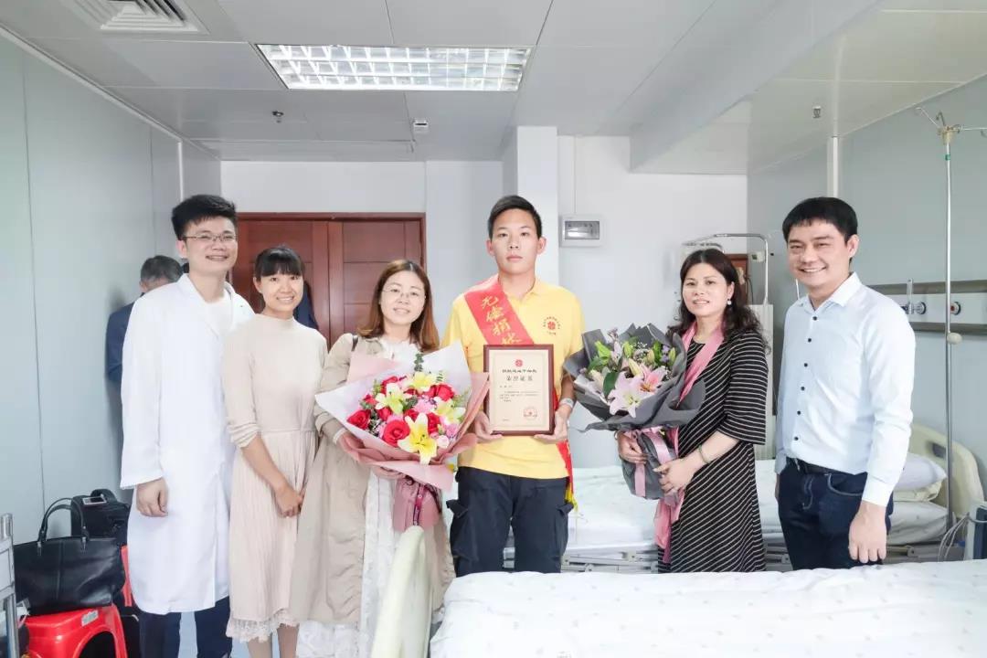 捐献当天,基础医学院党委书记唐湘涓、团委吴树高老师、辅导员魏莹莹老师和他的同学都来医院看他。唐湘涓书记向医生咨询了王锋回校后的注意事项,并叮嘱他照顾好身体。“现在的95后很了不起,他们用实际行动告诉我们什么是大爱。”唐湘涓书记表示。“他是一个很低调的学生,当我得知他要捐献造血干细胞的时候很吃惊,难道这就是传说中的闷声干大事?这样有大爱的学生让我倍感骄傲。”