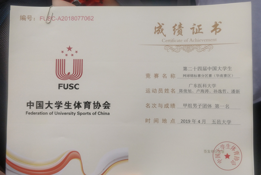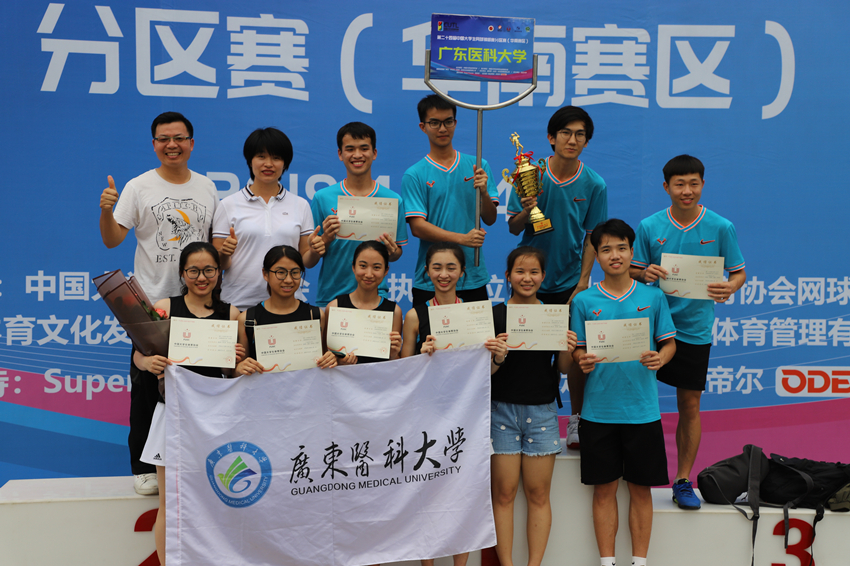 本次比赛有来自广东、福建、香港和澳门共20多所学校200多名运动员参加。在为期2天的比赛中,我校网球队在张枝尚和李春燕两位教练的带领下,发扬广东医人顽强拼搏、永不服输的体育精神,男队首次获得该赛事“男子甲组”团体冠军。女队也有上好的表现,获得“女子甲组”团体第六名。
