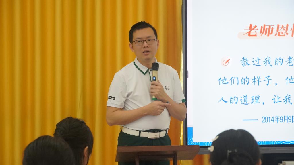 胡勉强老师以“道不尽的教书育人”为题,给大家带来了生动的一课。他从习近平总书记的尊师重教情怀说起,分享了时代楷模张桂梅老师点亮乡村女孩人生梦想、卢永根院士鞠躬尽瘁农业和教育事业的感人事迹,讲述了中华传统文化中的尊师重教文明礼仪,畅谈了自己对辅导员岗位职业价值的认识及助力学生成长成才的心路历程。胡老师希望同学们对传道授业解惑的老师们多一分尊重与爱戴,多一分理解与感恩,将短短数载师生缘化作一世师生情。