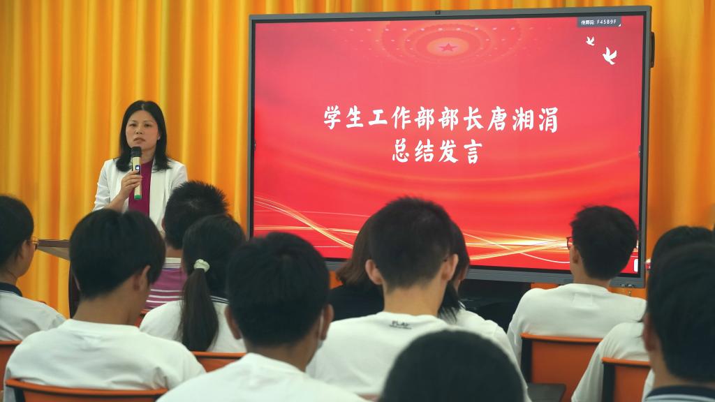 学生工作部部长唐湘涓老师在总结中带领同学们重温党的二十大报告中关于教育强国建设的重要精神,讲述了学校65年发展进程中涌现的师德模范的故事,激励同学们涵养“立志 感恩 勤奋 乐观”的品格,用实际行动传承广东医精神,立志做有理想、敢担当、能吃苦、肯奋斗的新时代好青年。