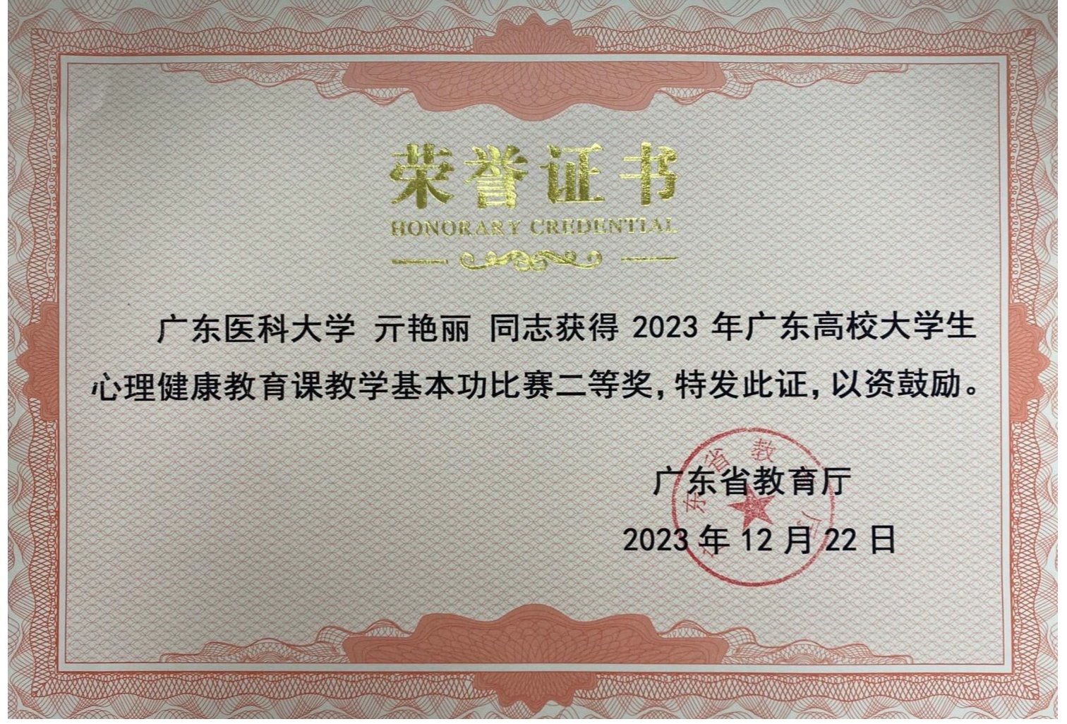 近日,2023年广东省高校大学生心理健康教育课教学基本功大赛决赛在广州中医药大学落下帷幕。经过片区入围赛、决赛,我校学工部心理健康教育与咨询中心专任教师亓艳丽荣获决赛二等奖。