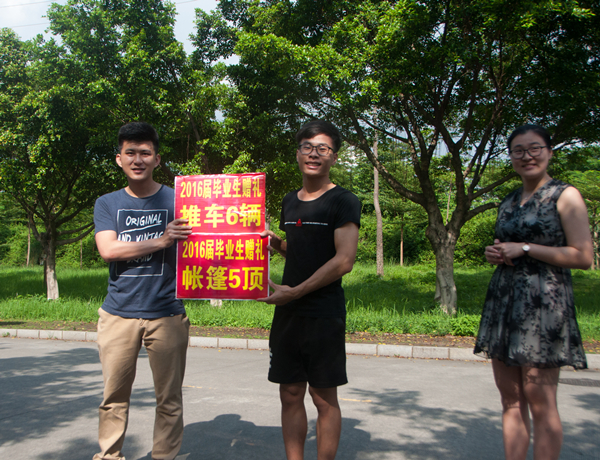 此外,2016届毕业生还向学院赠送了一批物资(6辆推车、5顶帐篷)。(文/王帅 刘振宇 图/李燕坤 编/谢孝东 审/蔡定彬)