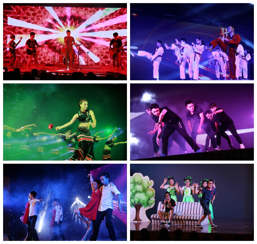 晚会的节目上跆拳道协会表演的《逆战》气势如虹,动作勇猛;民族舞队的舞蹈《女儿花》将广医女生的温婉、大方展现得淋漓尽致;TRS街舞队的街舞《POPING》激情四射,演艺队的小品《束缚》幽默搞笑,发人深省;国标队的国标舞《JUST DANCE》优雅灵动;韵乐坊的乐器表演《ALIZE》电音迷人;模特队的走秀节目《THE SHOW》嗨翻全场;合唱队的合唱《菊花台》空灵悠长等等。