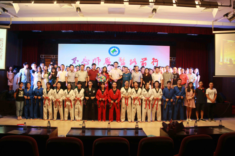 晚会最后,悠扬的《广东医之歌》再次在这南海之滨响起,全体师生齐唱校歌,慢慢拉上了晚会的帷幕。“在入学第11天,军训第6天,学校就给我们准备了这么精彩的晚会。很温暖,很有爱,感觉我的大学生活真的来了!”16级黎同学说出了新生们的心声。看完晚会,教研室的老师说,“迎新晚会结合教师节,老师和学生是真正的主体,很棒!”“学生们真的很有心,很用心,说实话,我心里还是挺感动的。”“学生导演的晚会能达到这样的水平,真的很了不起,我们的学生太棒了!”在这样一个特殊的教师节,老师们带着的微笑与学生们合影留念;2016级的新生们带着迎新晚会的感动,鼓足了劲,带着老师和师兄师姐的祝福,医路前行。(文/邱明红 朱燕雄 图/刘礼新 莫泰威 蔡满航 赖泉清 杨君婷 编/周圆 审/蔡定彬)