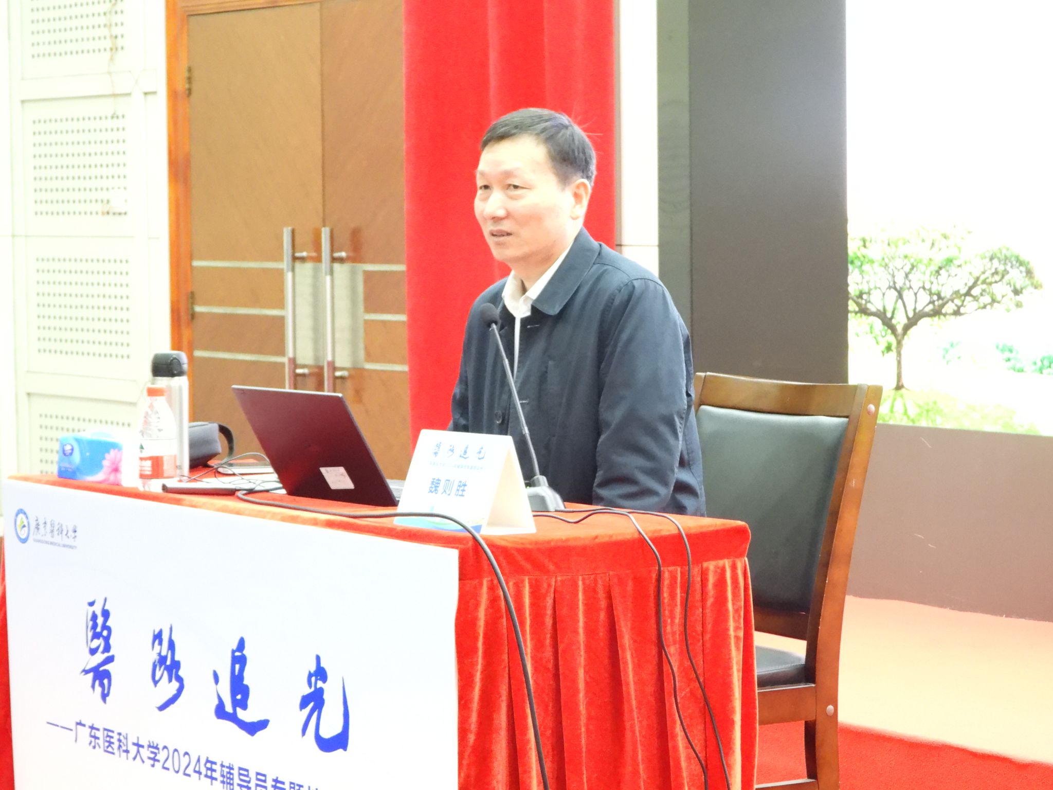 学生工作部谢孝东副部长《我校学生工作的若干重要问题及解决办法》为题,围绕习近平总书记对思政工作的重要论述,介绍了2024年学校辅导员队伍建设的“四大行动”成果,分析了我校学生工作面临的“五大挑战”,提出要在理念、思路、行动、模式方面推陈出新,全面建设“医路引航”“医路追光”“医路阳光”“医路润心”四大学工文化品牌。