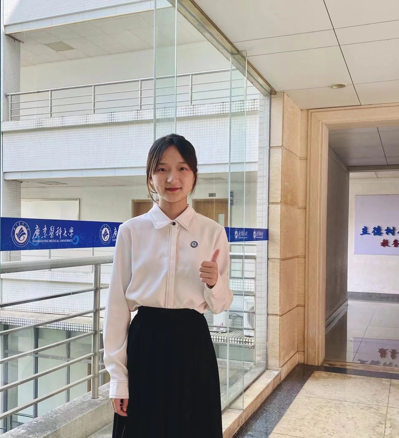 她关心国家大事,始终爱国向党,积极跟随党的步伐,严格遵守校规校纪,按时参与“青年大学习”团课学习,不断深化对党的理论认识,积极参与团日活动。她以个人带动集体,曾组织排演传颂红色文化的舞台节目,连续两年参加“伟德国际1946源于英国红色经典诵读大赛”并荣获二等奖;她与广东医合唱团在“‘永远跟党走’广东省第十四届大中专院校‘百歌颂中华’歌咏活动”中荣获镇街院校组三等奖,用实际行动践行红色爱国心。