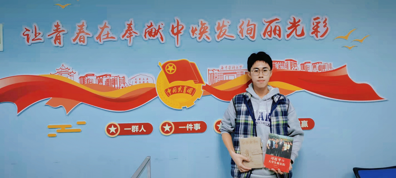 在日常生活中,他始终坚持每日读书的习惯,其中在《平易近人》《习近平的七年知青岁月》《习近平与大学生朋友们》等丛书中受益颇丰:当代青年当志存高远,树立正确理想信念、敢于开拓进取,加强学习与实践相结合,把奋斗精神体现在做好每一件小事、完成好每一项任务、履行好每一项职责的实际行动中。