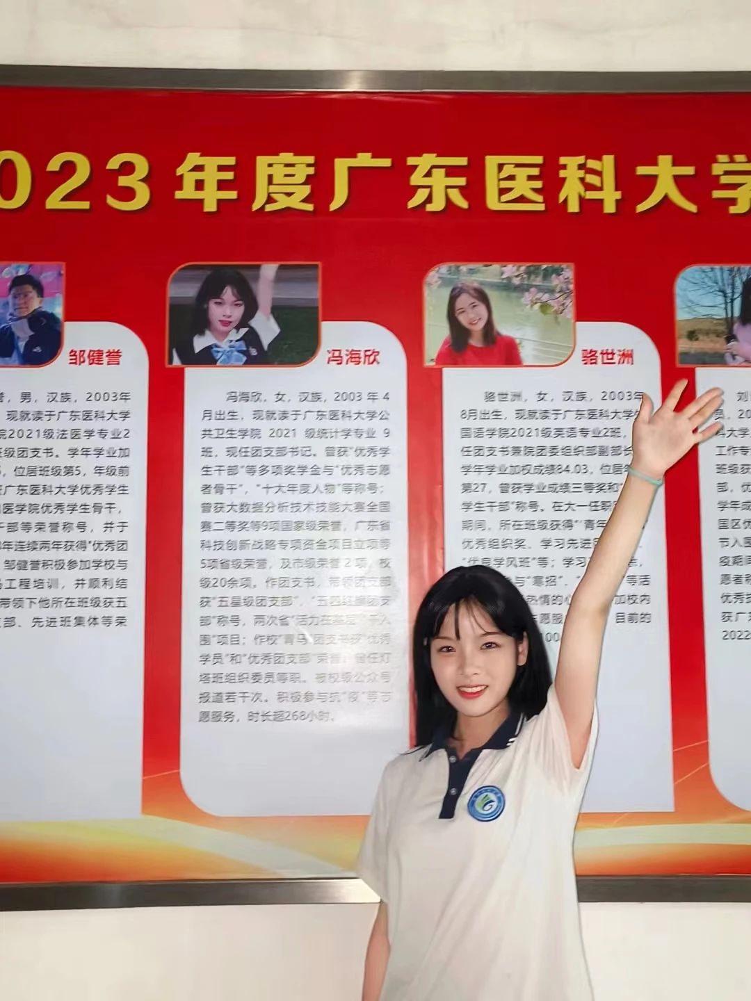 冯海欣自2021年入学以来,担任过近十个学生干部职位,组织活动近百场,带领集体获得荣誉近20余项,获得了“十大年度人物”、“十佳团支书”等10余项称号。