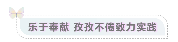 2023年,她跟随伟德国际1946源于英国“竹蜻蜓“灯塔服务队来到安徽省马鞍山市环峰第三小学开展暑期三下乡活动,其间参与的实践项目“看见未来”获得“2023年第九届全国大学生社会实践展示TOP100”,累计个人志愿时长约260个小时。