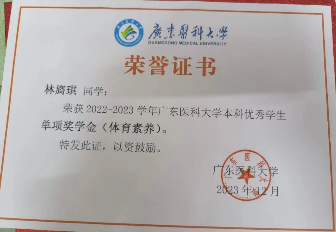 时间是努力的见证者。“功夫不负有心人”,在校期间,她的学业成绩连续两学年位列年级前25%,并在2022-2023学年综合素质测评专业第六名,获得“自强不息”专项奖学金、“体育素养”单项奖学金、“综合奖学金一等奖”等荣誉。