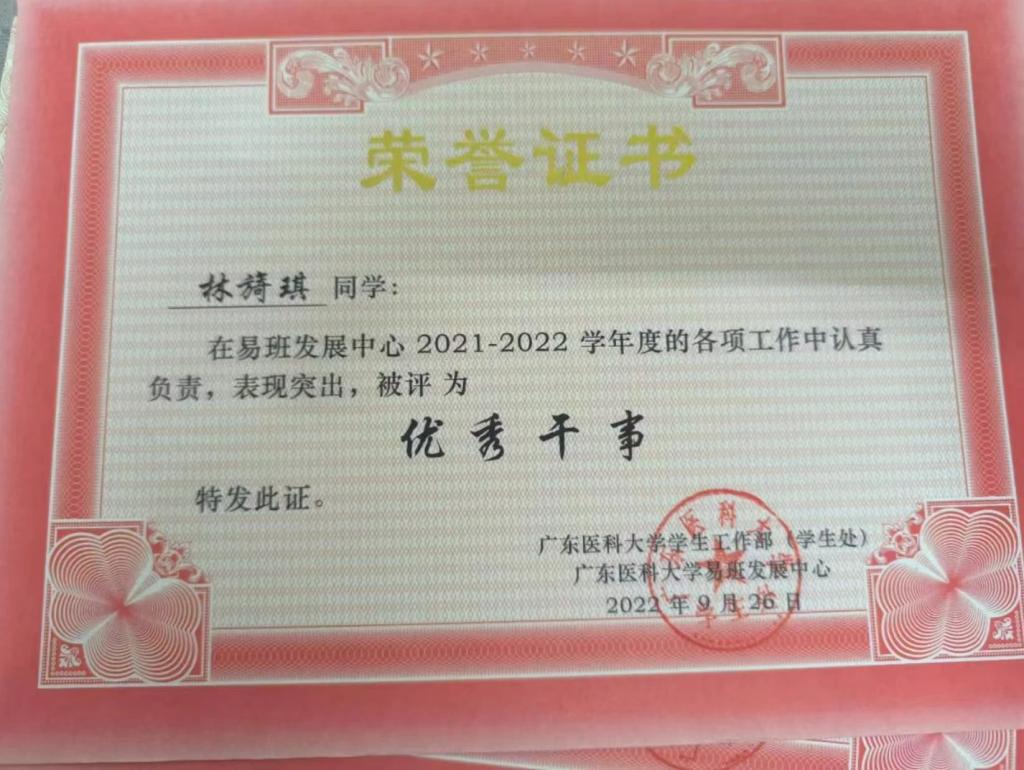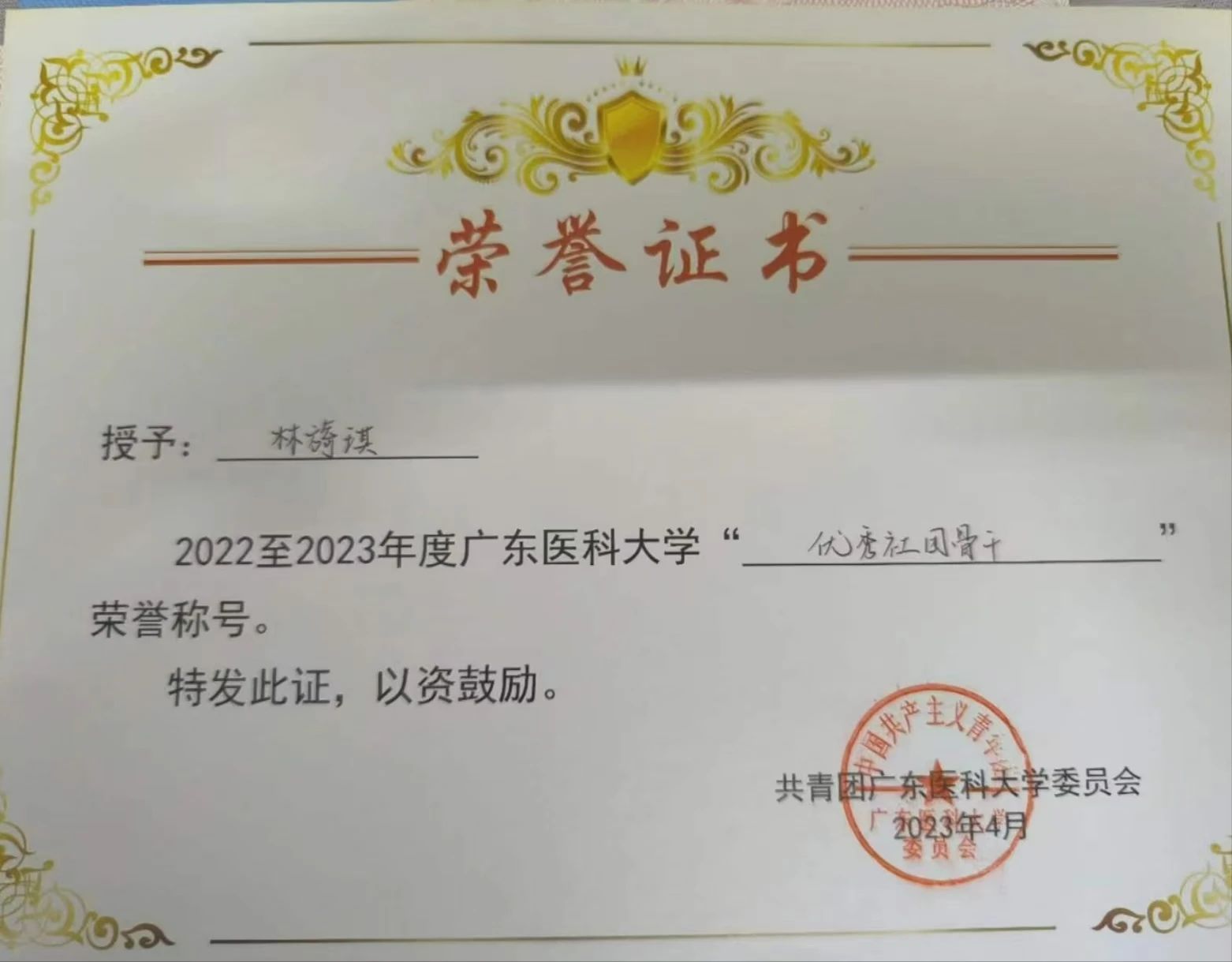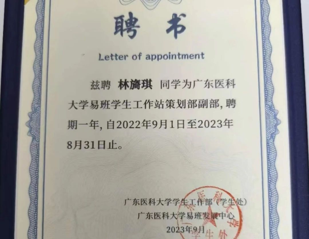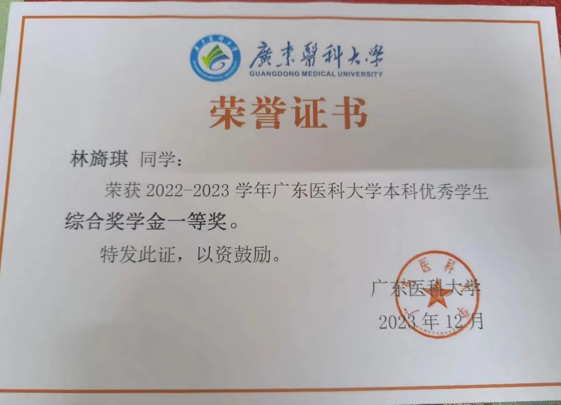 “服务同学”、“学习进取”、“责任心”,是她的人生信条。在此,林旖琪也用实际行动践行她之所言。在校期间,她获评“优秀社团骨干”、第八届全国学术英语词汇大赛优胜奖、“综合奖学金一等奖”、2023年暑期三下乡“优秀个人”、广东省二星志愿者等30余项荣誉称号。