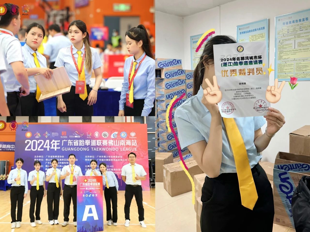 她还利用课余时间,考取广东省跆拳道协会二级、三级裁判员资格证,外出担任裁判期间,她维护比赛公平正义,荣获“优秀裁判员”的称号。