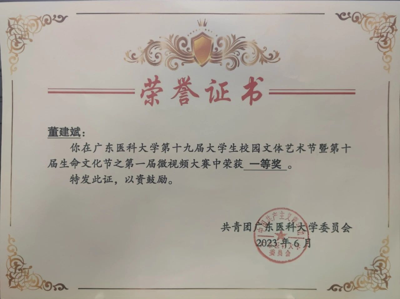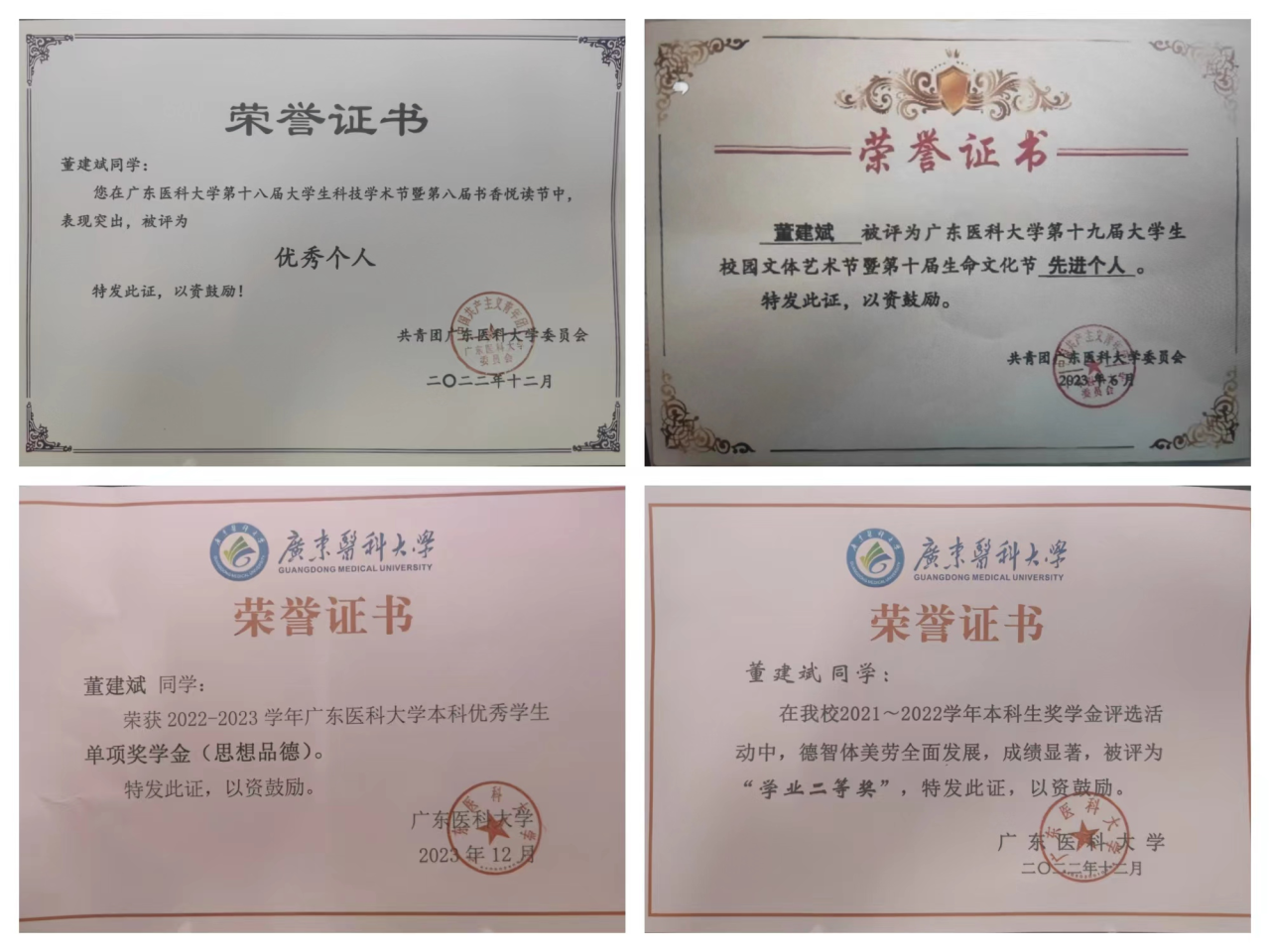 董建斌曾任团委科技部副部长,科研站副站长,院青马工程培训班第三团支部文体委员。获双节优秀个人、先进个人、院优秀学生干部等荣誉。