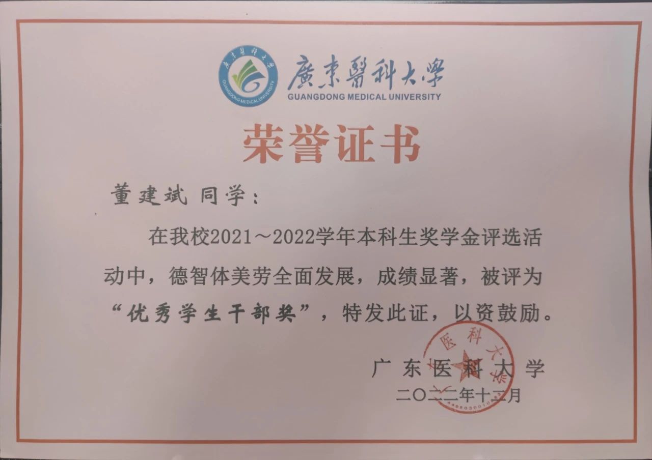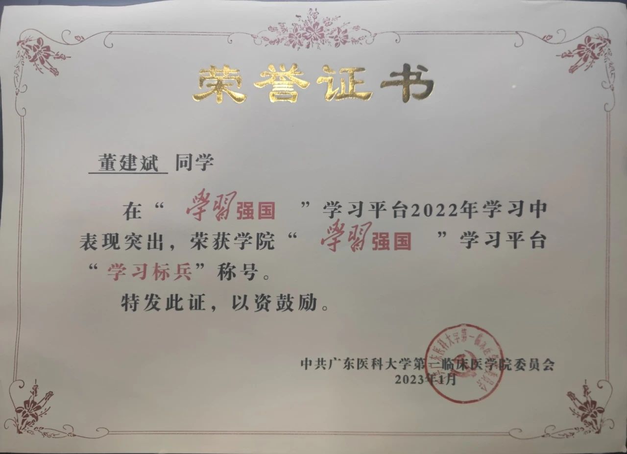 “路漫漫其修远兮,吾将上下而求索”是董建斌的人生信条。在未来的人生道路里,他将不忘初心,坚定理想信念,在医学的道路上越走越远。让我们以董建斌同学为榜样,努力学习,为社会贡献出自己的力量!