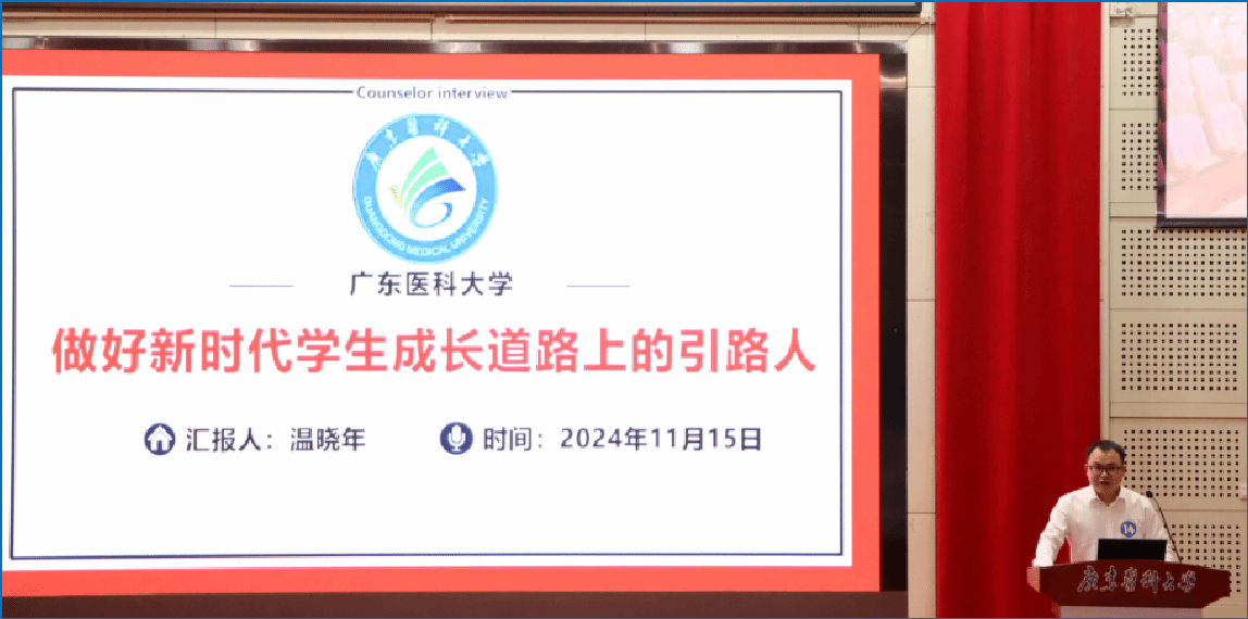 2024年以来,学校实施“配备选聘的强基行动”“培养培训的赋能行动”“明责严管的担当行动”“生涯成长的激励行动”等“四大行动”,抓好制度创新“总开关”、党委副书记“牛鼻子”、标杆人物“领头雁”、能力提升“主题词”“四大关键”,全面打造辅导员队伍建设“医路追光”工程。温晓年老师获得2023年“广东高校辅导员年度人物”,标志着学校“医路追光”学工品牌取得良好成效。