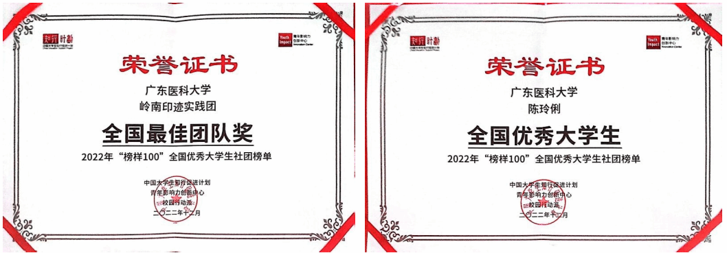 陈玲俐荣获“广东省三下乡优秀个人”,将所学知识带到乡村,助力基层医疗发展。