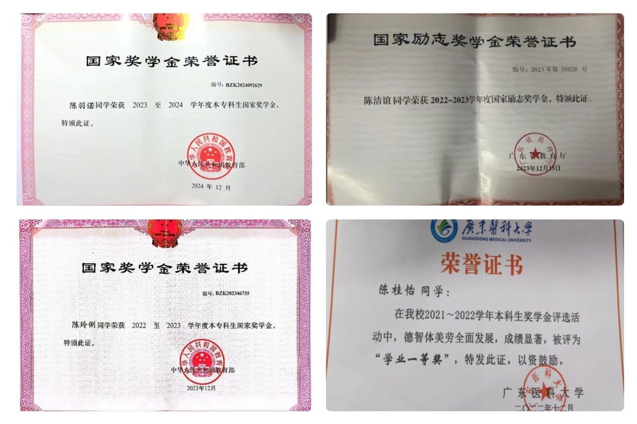 陈洁谊连续四年获得国家励志奖学金,综合排名前3%。在学术科研中勇于创新,积极参与环保设计、香囊制作等创新竞赛,展现出多方面的科研兴趣和才能。